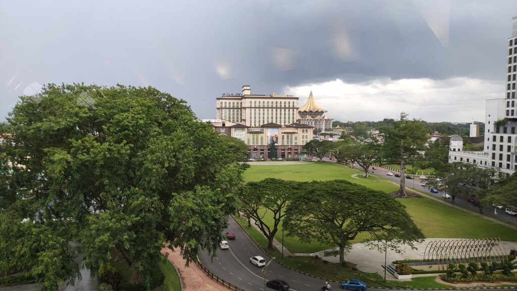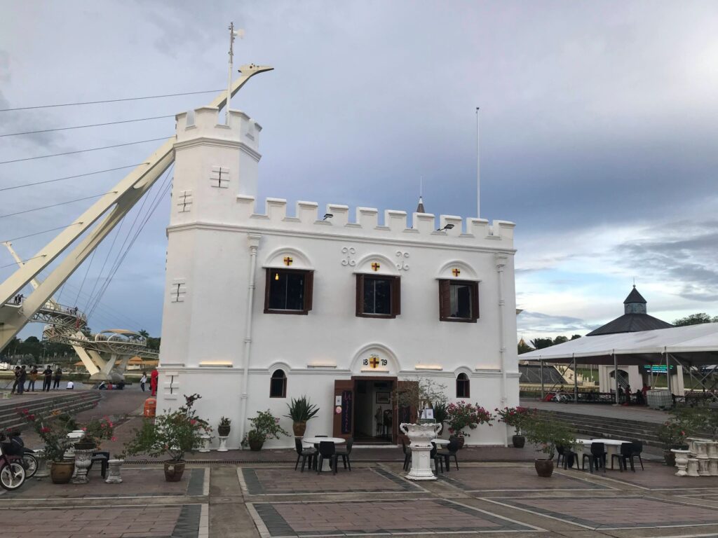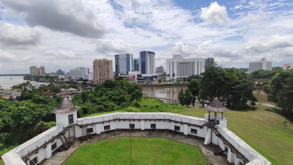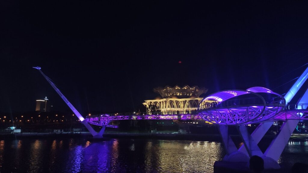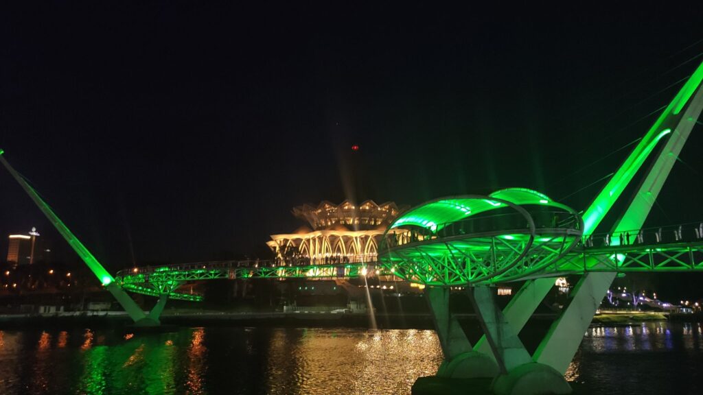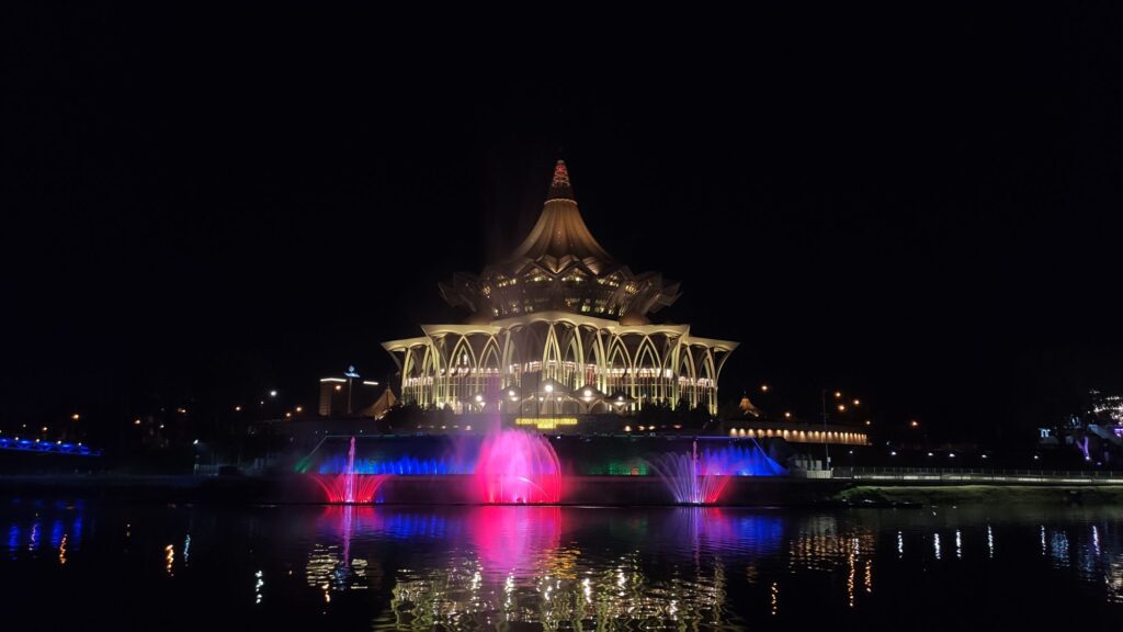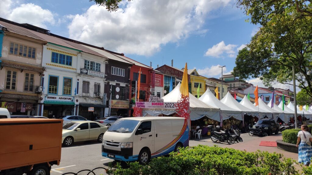 Kuching liegt nicht direkt am Meer, sondern etwas im Landesinneren am Sarawak River, an dessen Ufer sich eine ausgedehnte Promenade befindet – die Waterfront. Hier hat man einen tollen Ausblick auf das Parlamentsgebäude von Sarawak und die futuristisch anmutende “Darul Hana Bridge”. Am späten Nachmittag erwacht die Waterfront dann richtig zum Leben – zahlreiche, teils mobile Streetfood-Stände nehmen ihren Betrieb auf, es gibt Livemusik und Straßenkünstler (in Comic-Helden-Outfits tanzende Menschen). Wir haben das große Glück, dass genau während unseres Aufenthaltes die alljährliche große Drachenboot-Regatta stattfindet, in dem Mannschaften aus 16 Ländern gegeneinander antreten. Begleitet wird dieses von einem großen Art- und Food-Festival, für welches zusätzlich hunderte kleine Stände in Zelten an der Waterfront aufgebaut wurden.