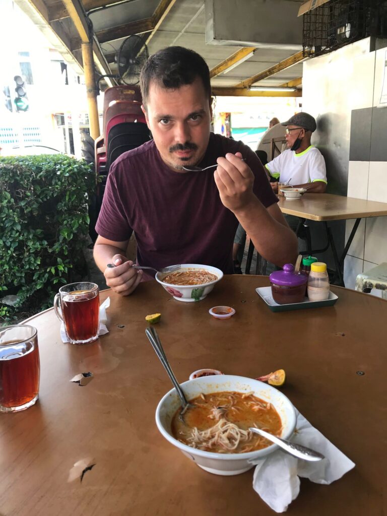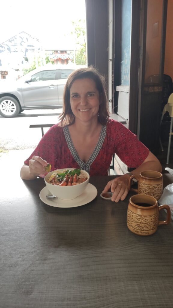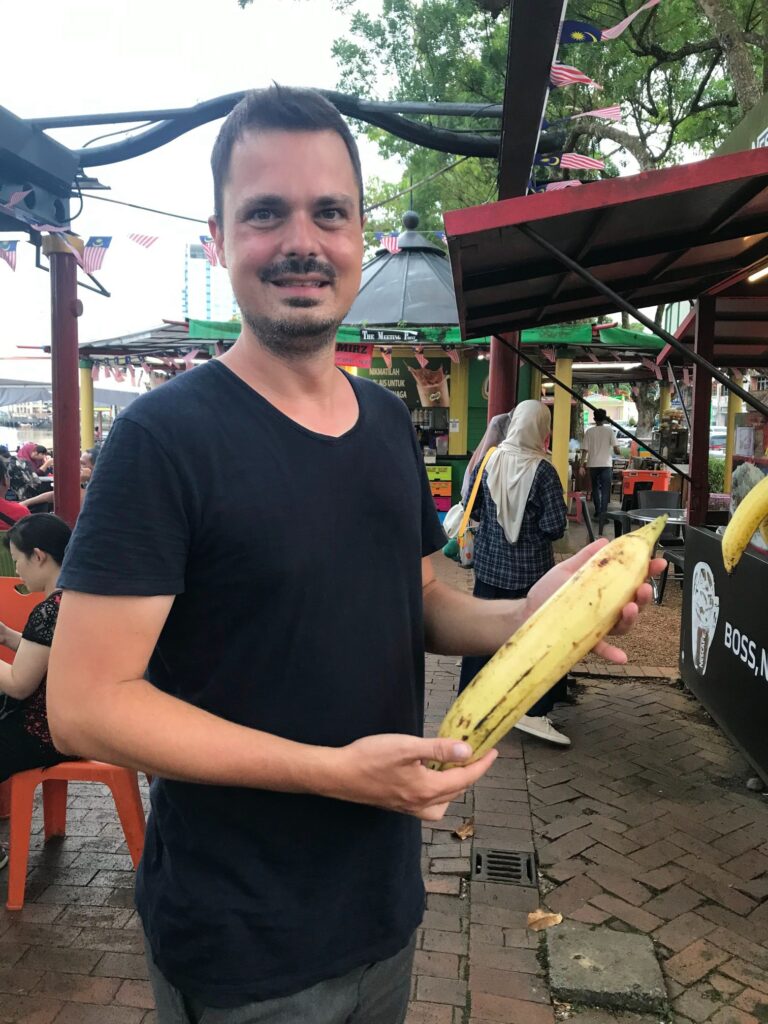 Das Essen in Indonesien war immer sehr gut und wir haben uns auch nach vielen Wochen nicht komplett daran satt gegessen, aber das ist kein Vergleich zu Kuching! Es gibt hier eine riesige Vielfalt an Gerichten. Da hier neben den Malaien ebenfalls vieIe Chinesen und Inder leben, gibt es vielfältige Einflüsse auf die lokalen Gerichte. Unser eindeutiger Favorit ist die Sarawak-Laksa-Suppe, die wir regelmäßig essen, knapp gefolgt von Mee Kolok. An der Waterfront Kuchings gibt es zudem eine große Auswahl an Streetfood, das sich mit dem Beginn des Dracheboot-Festivals noch einmal deutlich vergrößert. Am besten hat uns hier “Cheese Banana” geschmeckt – in Teig frittierte Banane mit geriebenen Cheddarkäse und Vanillesauce 🙂 Es gibt noch so viel mehr, wie Hainanese Steamed Bread oder der gebratene Fisch vom “TopSpot”, aber man kann ja nicht alle leckeren Gerichte aufzählen… 🙂