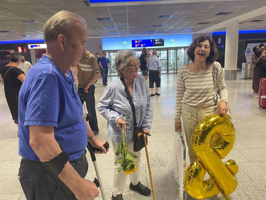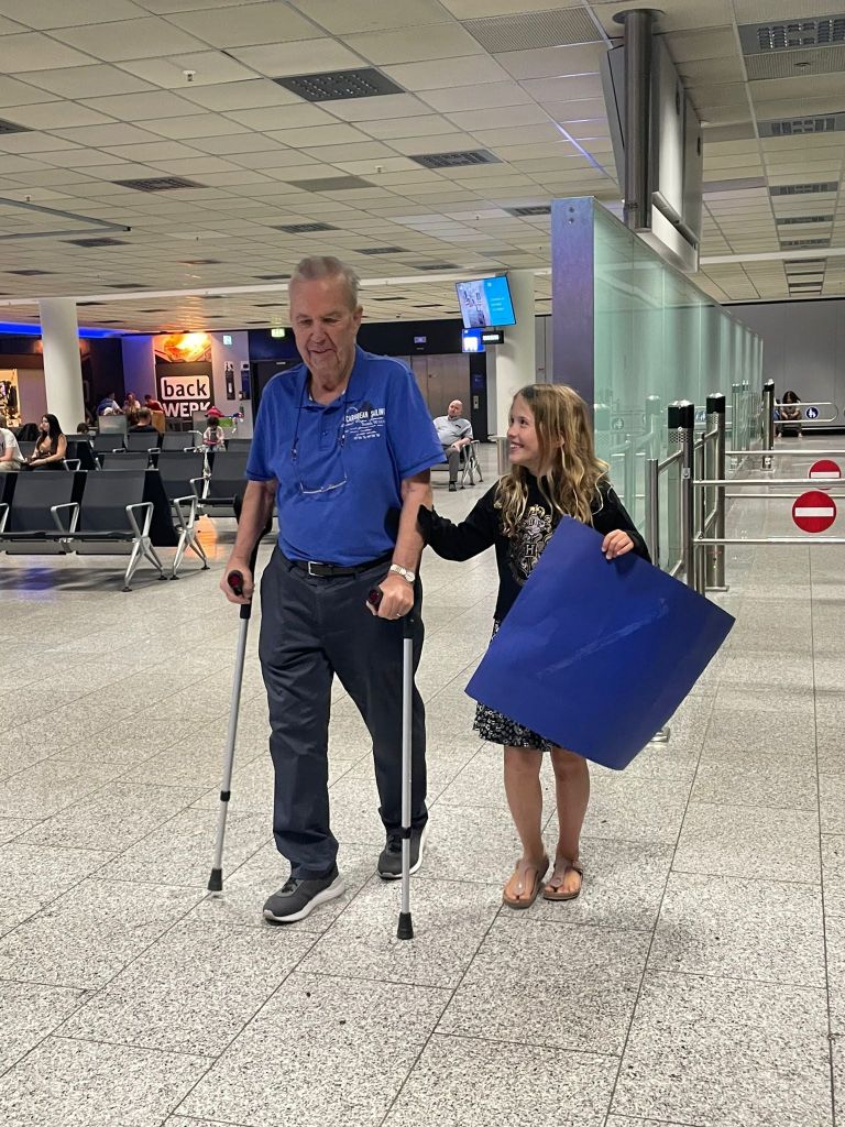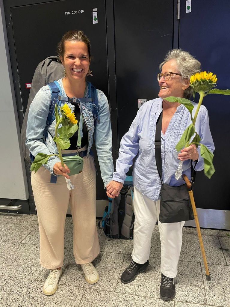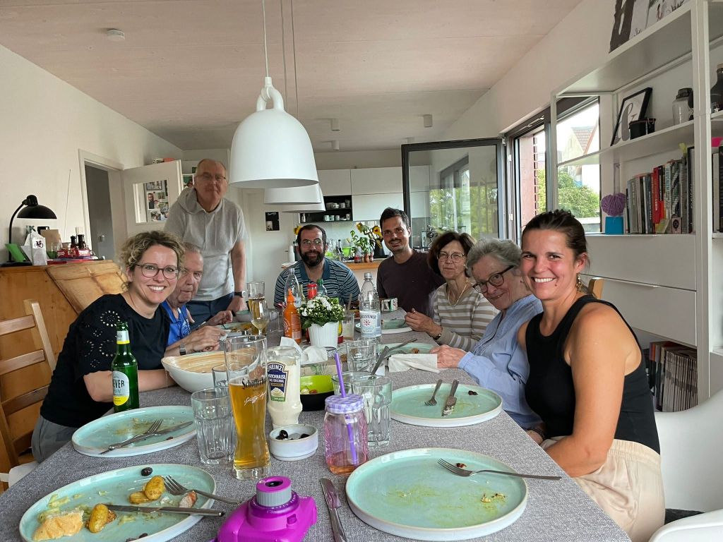Unsere Ankunft in Frankfurt (und später auch in Berlin) war ein wirklich wunderbares Erlebnis! Wir wurden von unseren Familien mit einem großen Hurra, selbst gebastelten Schildern, verschiedenen Luftballons und einer unbeschreiblichen Freude empfangen! Es ist schön, zu erfahren, dass Menschen zuhause auf einen warten und sich freuen, uns wiederzusehen! Trotz einer Verzögerung bei der Gepäckausgabe von knapp zwei Stunden halten alle, ob jung ob alt, die Stellung vor der Ankunftshalle! Und dann wurden wir von Tina und Jan auch gleich noch gemeinsam mit allen anderen zum Grillen eingeladen. Ein wirklich traumhafter Empfang in Deutschland 🙂
