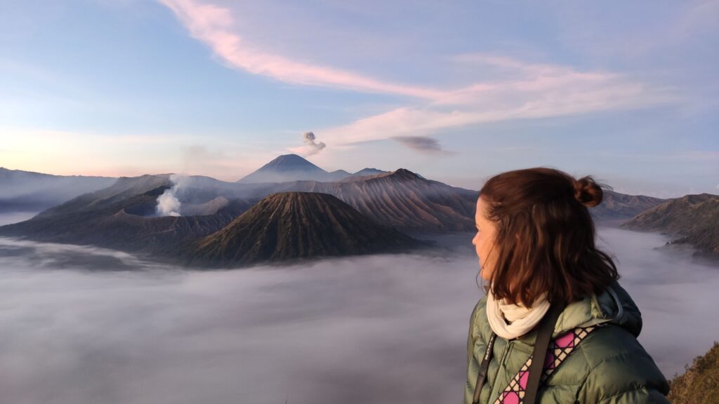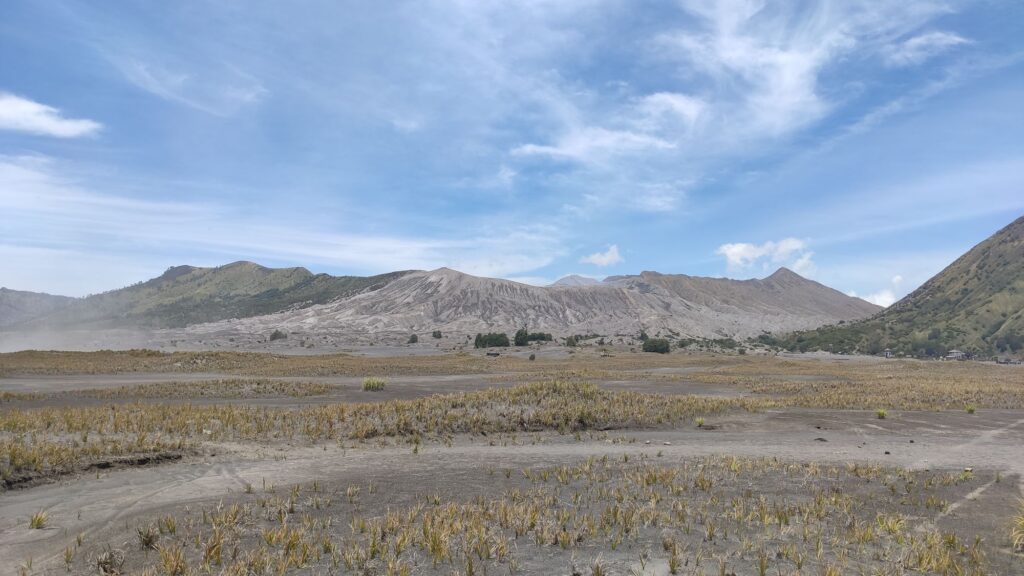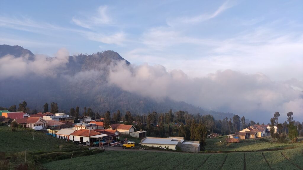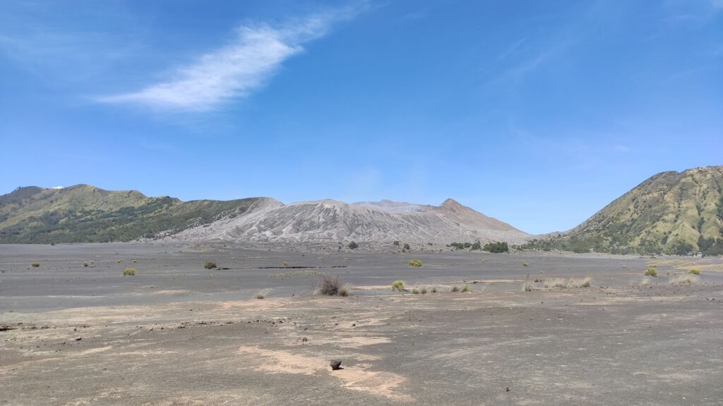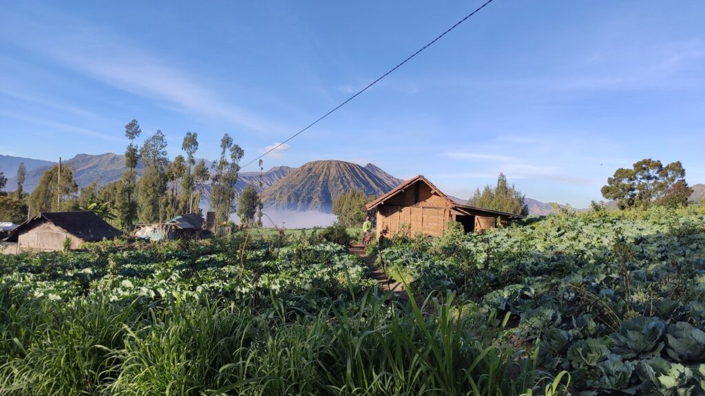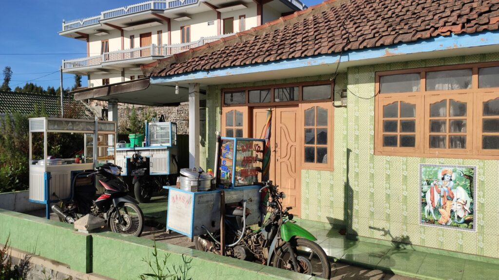 Der Mount Bromo ist einer der bekannteste Vulkane Javas, wenn nicht sogar Indonesiens. Für unseren Besuch im Hochland der Insel nehmen wir uns für zwei Nächte ein Hostelzimmer in Cemoro Lawang, einem kleinen Dorf direkt am Rande des äußeren Vulkankraters. Ein schönes Kontrastprogramm zu unserem Inselaufenthalt auf Karimunjawa. Auf rund 2.500m über dem Meeresspiegel packen wir das erste Mal die wenige warme Kleidung aus, für die wir aber doch verhältnismäßig viel Platz in unserem begrenzten Reisegepäck geopfert haben. Hier scheint die Höhensonne zwar intensiv, es weht aber kontinuierlich ein sehr kühler Wind, der uns immer wieder schnell zur Jacke greifen lässt.