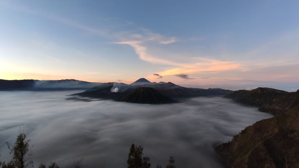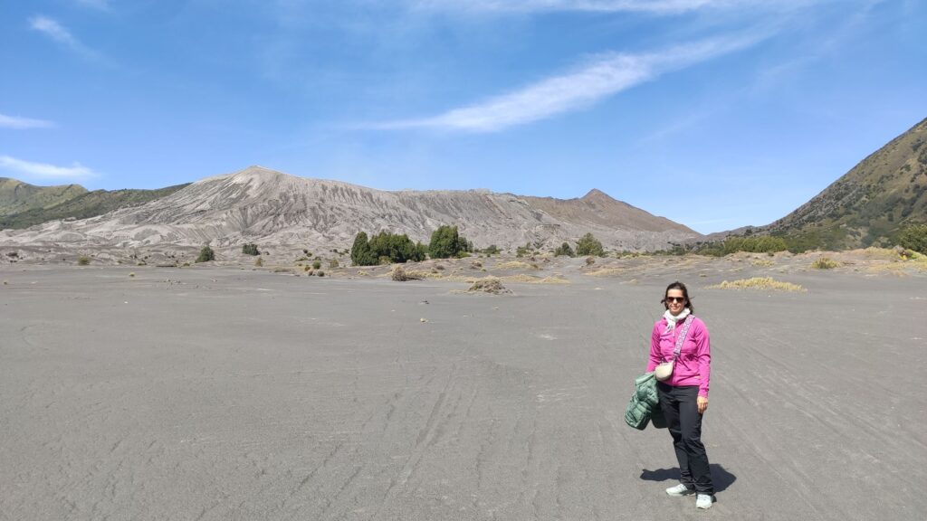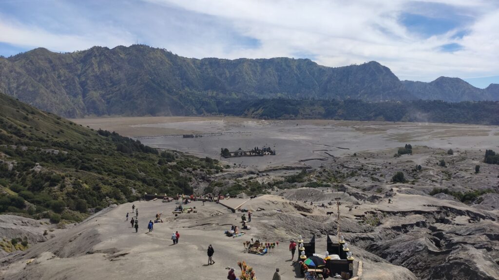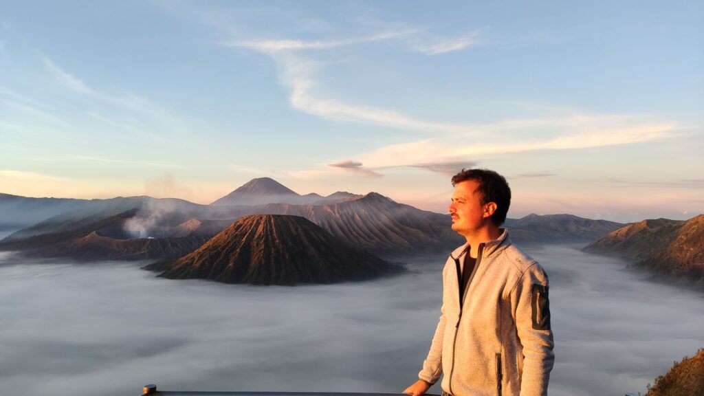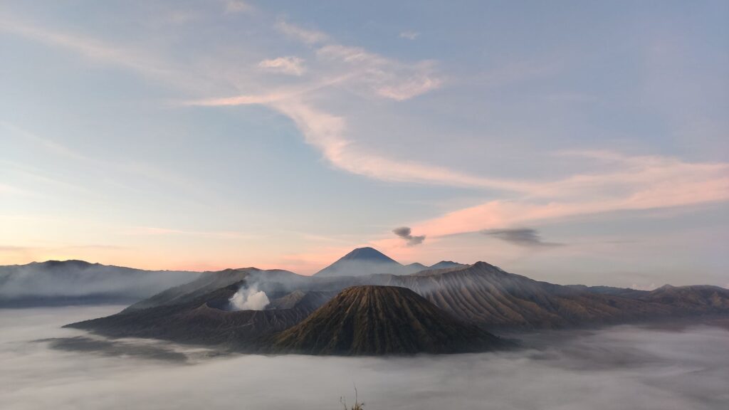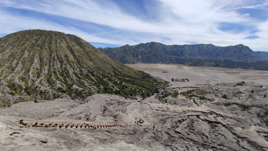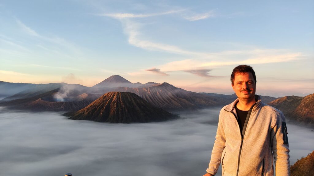Der Mount Bromo ist einer der bekannteste Vulkane Javas, wenn nicht sogar Indonesiens. Für unseren Besuch im Hochland der Insel nehmen wir uns für zwei Nächte ein Hostelzimmer in Cemoro Lawang, einem kleinen Dorf direkt am Rande des äußeren Vulkankraters. Ein schönes Kontrastprogramm zu unserem Inselaufenthalt auf Karimunjawa. Auf rund 2.500m über dem Meeresspiegel packen wir das erste Mal die wenige warme Kleidung aus, für die wir aber doch verhältnismäßig viel Platz in unserem begrenzten Reisegepäck geopfert haben. Hier scheint die Höhensonne zwar intensiv, es weht aber kontinuierlich ein sehr kühler Wind, der uns immer wieder schnell zur Jacke greifen lässt.