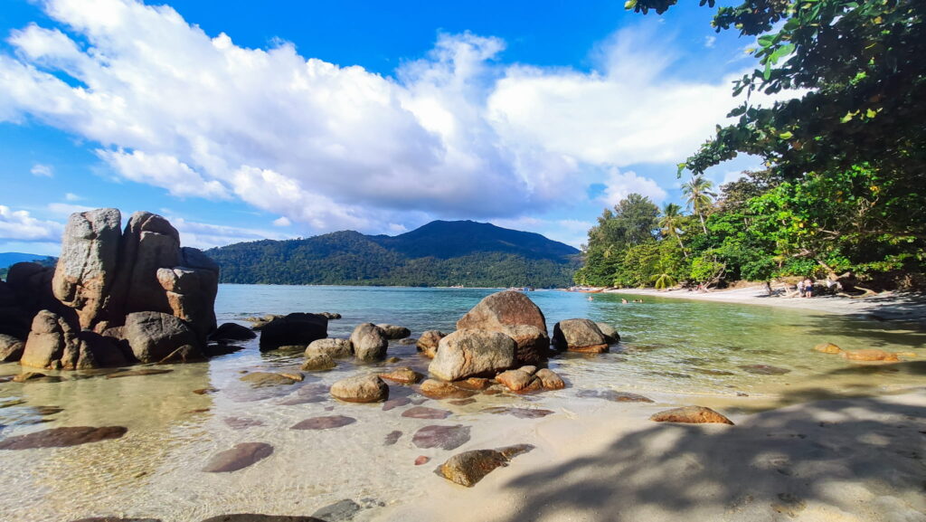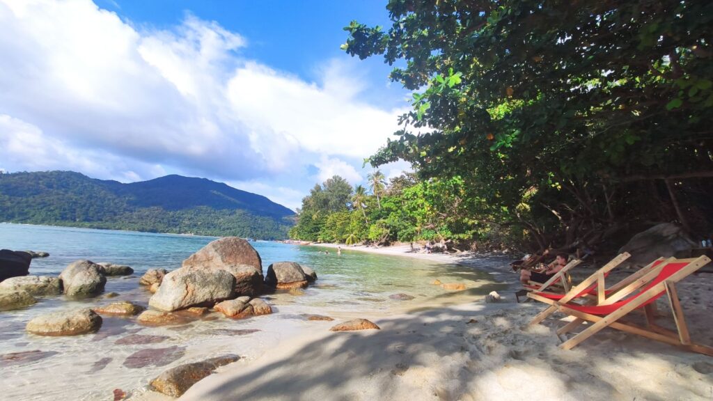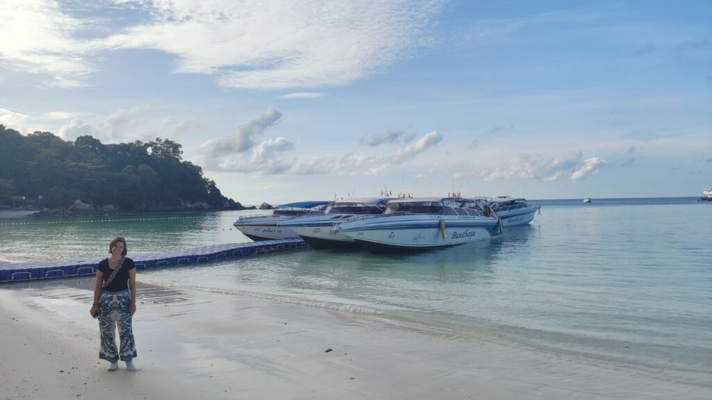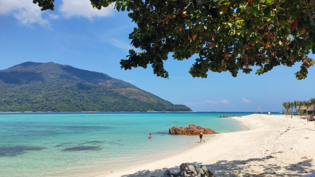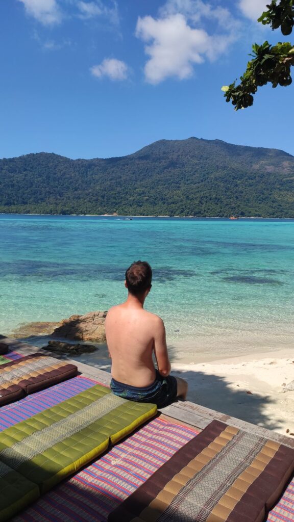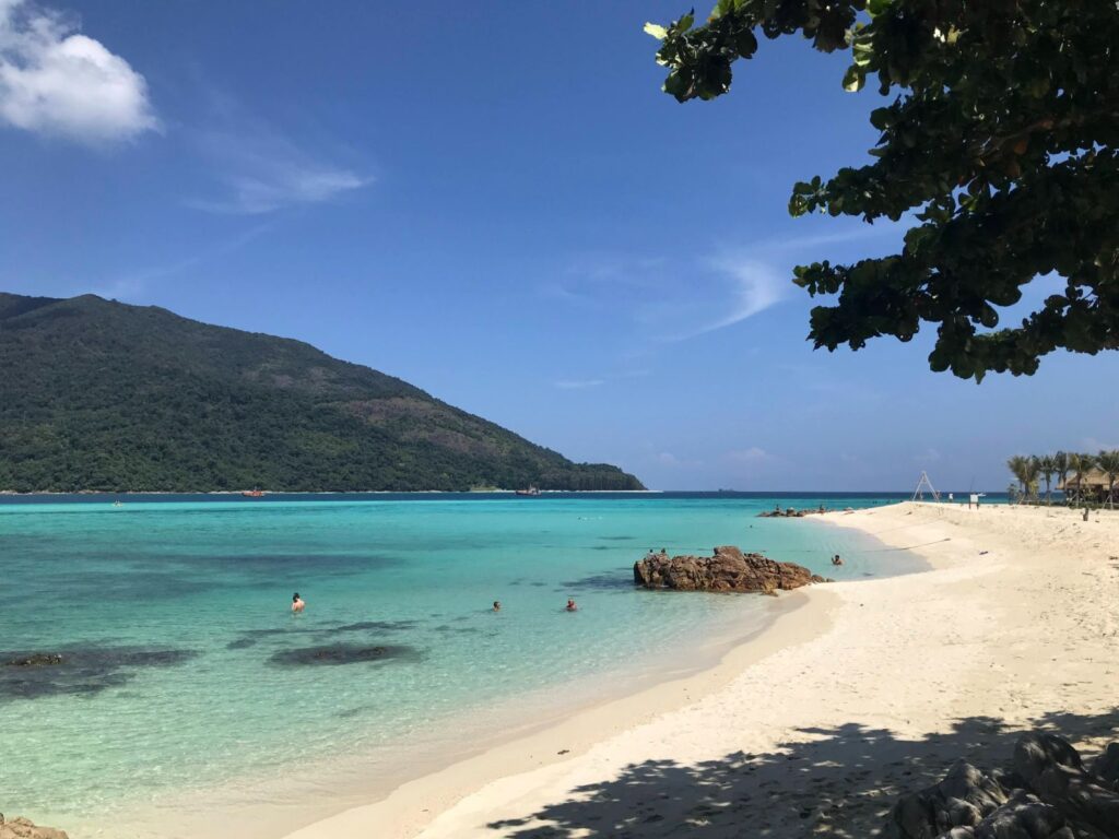 Obwohl wir in unseren vorhergehenden Urlauben schon viel in Südost-Asien herum gekommen sind, fehlt uns, bis auf einen kurzen Stop-over in Bangkok, der Klassiker Thailand noch vollkommen in unserem Erfahrungsschatz. Wir freuen uns auf besseres Wetter (in Malaysia hat es fast jeden Tag mehr oder weniger kräftig geregnet), leckeres Essen und neue kulturelle Eindrücke. Auf der winzigen Insel Koh Lipe ganz im Süden Thailands finden wir… nun ja, zumindest schon einmal Ersteres 🙂 Als hätten wir mit dem Grenzübertritt eine magische Barriere überschritten, ist der Regen wie verschwunden und wir erleben pure Sonne bei strahlend blauem Himmel. Ansonsten ist Koh Lipe eigentlich wie erwartet – sehr touristisch und leider etwas überlaufen. Es hat dafür aber schöne Strände, eine gute Infrastruktur und wir haben eine sehr schöne Unterkunft! Durch eine glückliche Fügung liegt unser Hostel sogar an dem mit Abstand schönsten Strand der Insel: Sunset Beach. Die übrigen Strände waren leider mit Holzbooten so zugestellt, dass es einen nicht wirklich gereizt hat, dort ins Wasser zu springen.