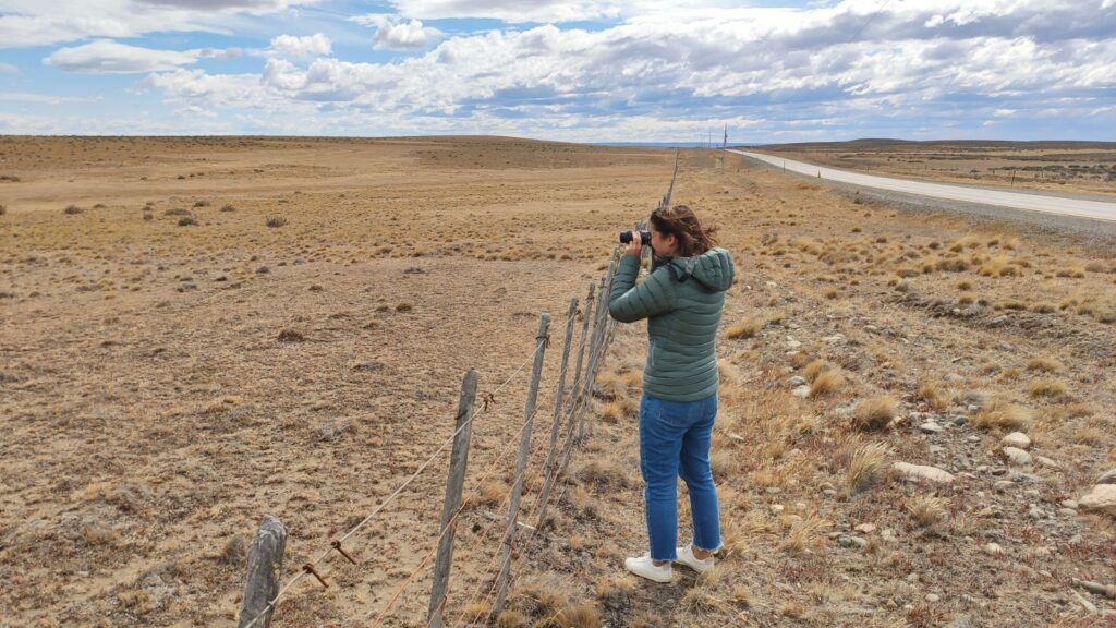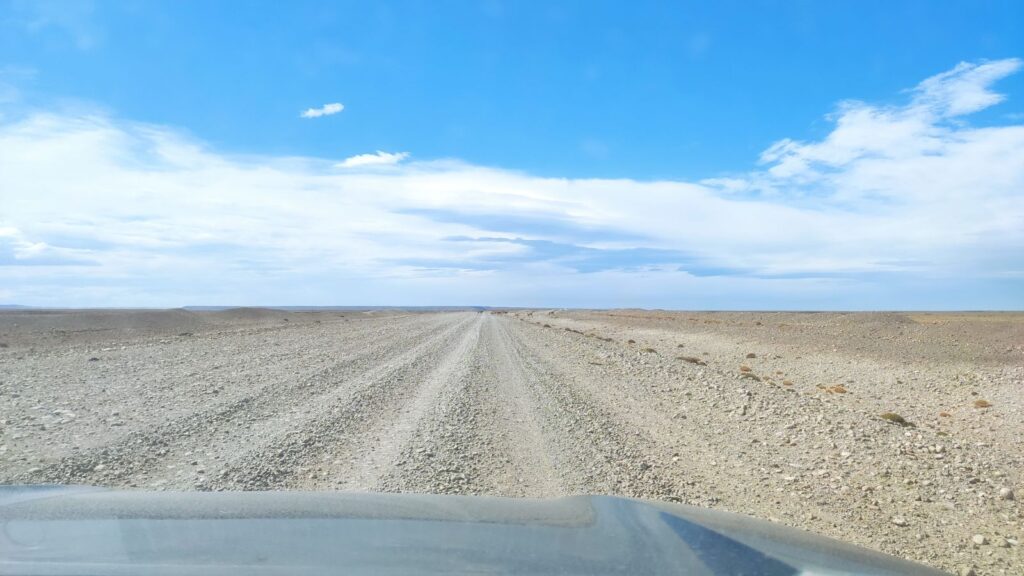 Zwischen den Anden und der Atlantikküste liegt eine scheinbar grenzenlose Einöde. Soweit das Auge reicht, gibt es nur Staub und Steine mit vereinzelten sehr kargen Büsche und Gräsern. Umso erstaunlicher ist es, dass man hier alle paar Minuten an einer kleinen Guanako-Herde oder eine Gruppe Nandus vorbeikommt, die genügsam die kleinen, dürren Pflanzen verzehren und dabei stoisch dem Wind trotzen. Warum hier weite Teile des Geländes aufwändig mit tausenden Kilometern Zaun umzäunt sind, erschließt sich uns nicht wirklich… Da Guanakos die Zäune mit Leichtigkeit überspringen und auch Nandus augenscheinlich bei Bedarf immer eine Lücke finden, kann deren Zucht kaum der Grund sein… Selten sieht man auch mal einen kleinen Schakal, ein Gürteltier oder einen Geier 🙂