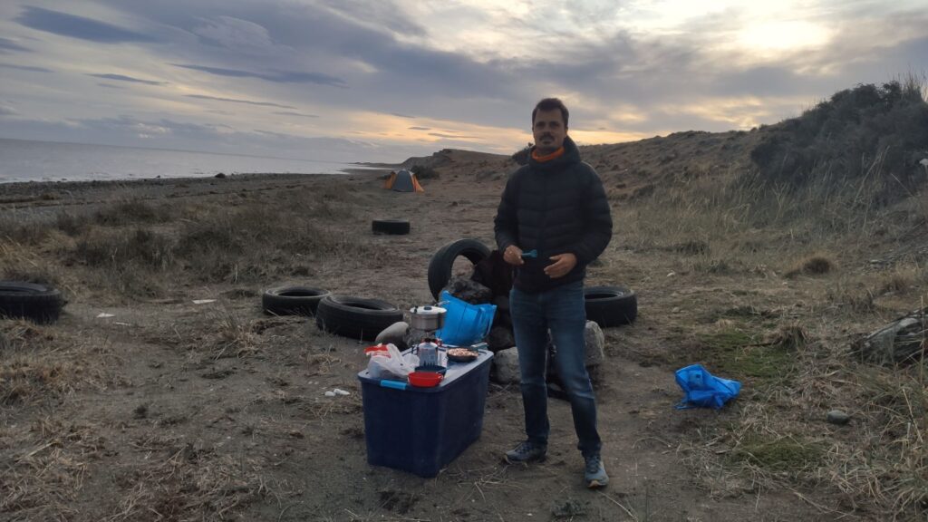 Hört sich jetzt aber vielleicht dramatischer an, als es war 🙂 Wir waren gut ausgerüstet, das Zelt hat jedem Wind standgehalten und gefroren haben wir glücklicherweise beim Schlafen kaum. Nur die typischen schönen Seiten des Zelten kamen leider etwas zu kurz. Direkt am Strand oder einem See zu zelten, war aufgrund des fehlenden Windschutzes kaum möglich. Auch abends gemütlich zu zweit vor dem Zelt zu sitzen, einen regionalen Wein zu trinken und in die Sterne zu schauen, bleibt leider nur eine schöne Fantasie… An manchen Tagen harren wir aus Trotz dennoch nach dem Essen eine halbe Stunde im Wind aus, bevor wir aufgeben und uns dann doch schnell ins Zelt zurückziehen….