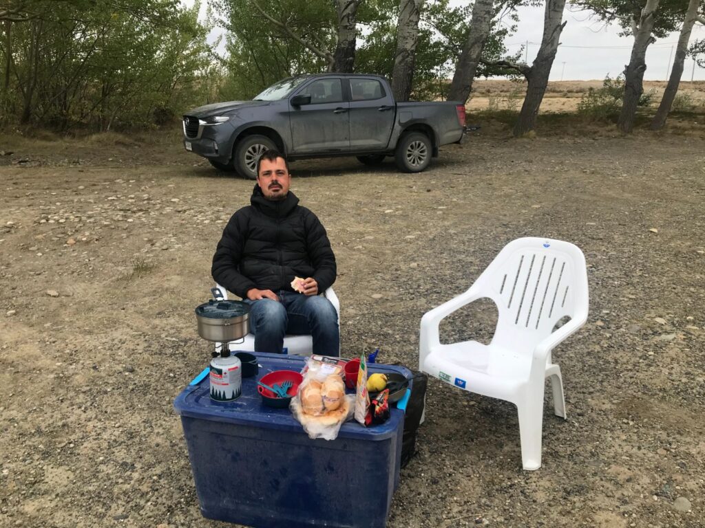 Eine ganz neue Erfahrung steht uns bevor! Nach mehr als einem halben Jahr Sommer wird es plötzlich kalt – und vor allem stürmisch…! Auch wenn Patagonien von Beginn an einen festen Platz bei den angepeilten Reisezielen hatte, klären wir die Details erst in Singapur von unserer Schlaf-Kapsel aus. Deutlich zu spät, um in Patagonien noch eine große Auswahl zu haben. Reiseblogs empfehlen für die Hochsaison sowohl die Unterkünfte als auch die Mietwagen stets mindestens 6 Monate im Voraus zu buchen – was auf unserer Reise natürlich nicht möglich war. Es gibt also keinen Camper mit kleiner Küche und Bett für uns. Auch keinen Van mit Dachzelt. Nichtmal einen ohne… ^^ Schließlich ergattern wir mit viel Glück noch einen nicht ganz günstigen Pick-Up und beschließen dafür, wagemutig zur Einhaltung unserer Finanzen zu zelten 😀