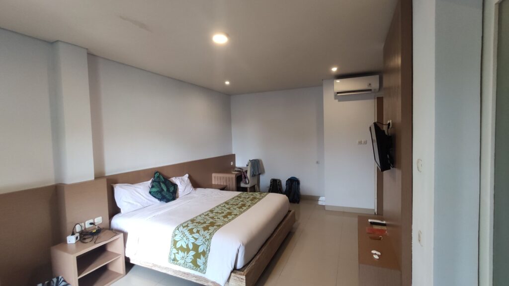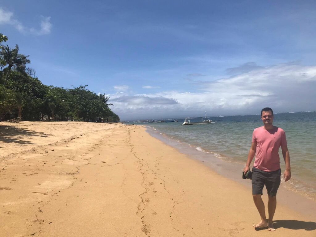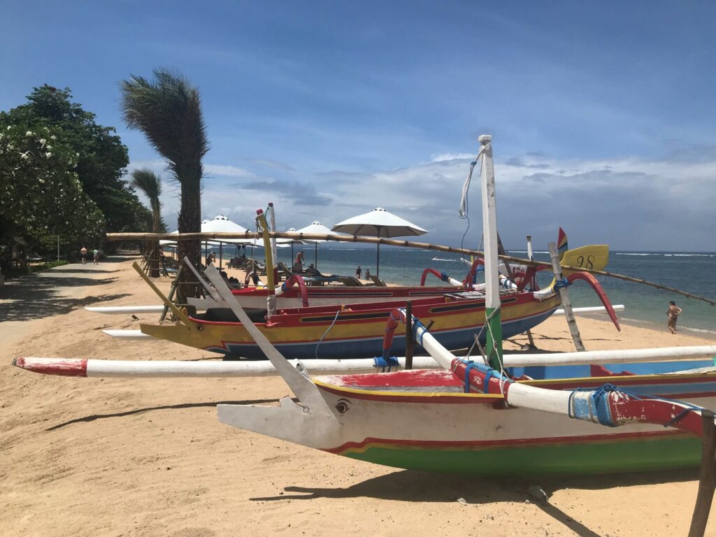 Zurück in Bali entscheiden wir uns zunächst einmal der Einfachheit halber in Sanur zu bleiben. Da wir wieder am Hafen von Sanur ankommen, ist die Anreise kurz, ebenso die Wege zur medizinischen Versorgung nach Denpasar. Hier finden wir ein einigermaßen schönes und dennoch in unserem Preisrahmen liegendes Hotel, das für einen ruhigen Aufenthalt zur Rekonvaleszenz ideal erscheint. Unser Zimmer erinnert zwar an ein in die Jahre gekommenes Business-Hotel, für unsere Zwecke ist es aber ideal und wir haben sogar das erste Mal auf unserer Reise einen Fernseher im Zimmer, der in Kombination mit dem mitgebrachten Chromecast und somit der Möglichkeit Netflix zu gucken, etwas Abwechslung in die Krankheitstage bringt 😉 Ansonsten ist Sanur ein ganz hübscher, ruhiger, aber etwas langweiliger Küstenort, der in erster Linie von Senioren und Familien besucht wird. Da in Sanur ansonsten leider nicht viel zu machen oder zu sehen ist, brechen wir nach wenigen Tagen, bei den ersten Anzeichen der gesundheitlichen Besserung, unsere Zelte hier wieder ab und machen uns für die verbleibenden Tage bis zu unserem Abflug nochmal auf in den Osten der Insel.