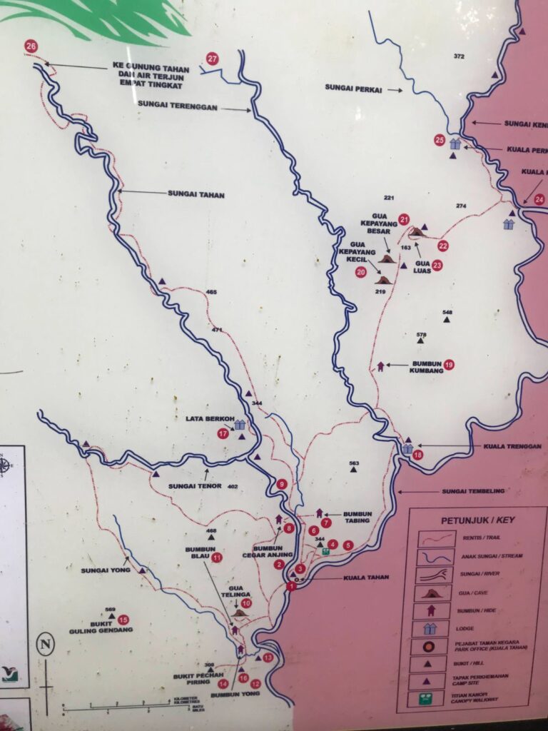 Taman Negara heißt übersetzt einfach nur “Nationalpark” – so gesehen waren wir schon in einigen” Taman Negaras” in Malaysia. Heute kommen wir aber in DEN Taman Negara, der soweit wir wissen auch keinen anderen Namen besitzt. Taman Negara liegt im Zentrum West-Malaysias und beherbergt angeblich den ältestens Urwald der Welt. Ganz klar ist uns nicht, wie man das genau bemisst – es gibt ja etliche Waldgebiete, die noch nie abgeholzt wurden, aber wir nehmen das gerne einfach so hin – immerhin können wir jetzt sagen “Wir waren im ältestens Urwald der Welt!” 😀